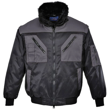 Ce blouson contemporain bicolore est élégant et pratique. Ses principales caractéristiques : manches amovibles, poches multiples sécurisés, doublure et col en fourrure amovible. La toile étanche extérieure permet de le porter par tous les temps.