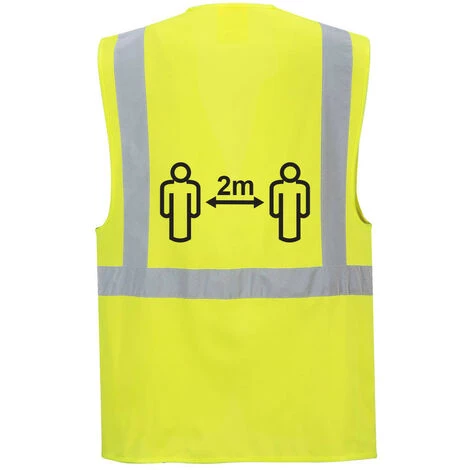 Soyez en sécurité, soyez vu avec le gilet Executive de distanciation sociale de Portwest. Cette conception révolutionnaire combine plusieurs poches de rangement avec l’avantage supplémentaire d’un logo de distanciation sociale préimprimé qui peut résister à des lavages répétés. Une pochette transparente pour les laissez-passer et les cartes de sécurité complète ce vêtement unique.