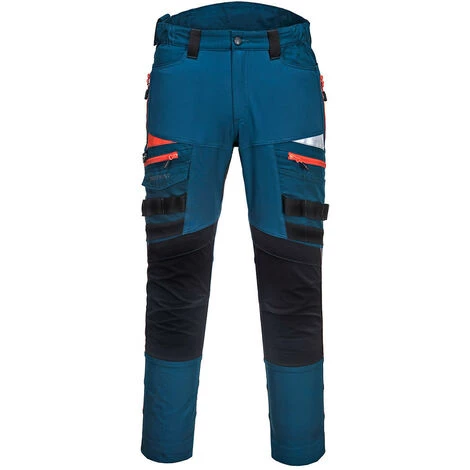 Le pantalon DX4 dispose d’empiècements extensibles dynamiques 4X stretch pour offrir une liberté de mouvement maximale pendant le travail. Le pantalon est doté d’une taille haute au dos avec élastique latéral, assurant une protection dans toutes les positions de travail Des poches pour genouillères réglables à entrée par le haut, des poches italiennes de taille généreuse et des poches zippées multifonctionnelles sur les cuisses offrent un rangement sécurisé. Triples coutures partout pour une durabilité maximale.